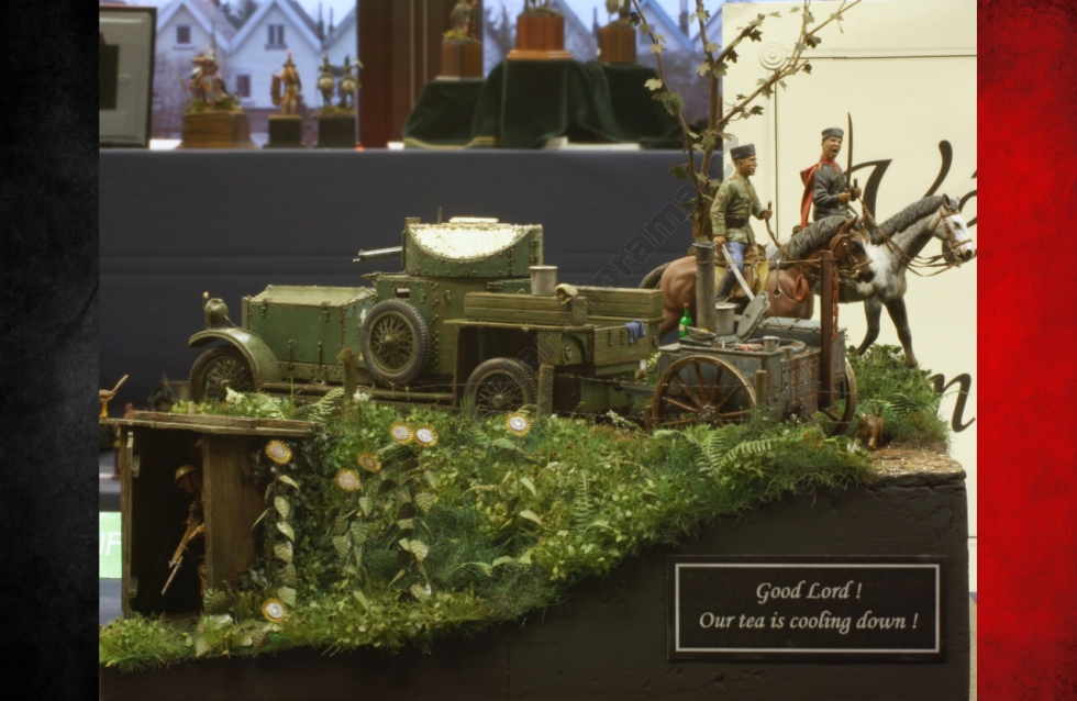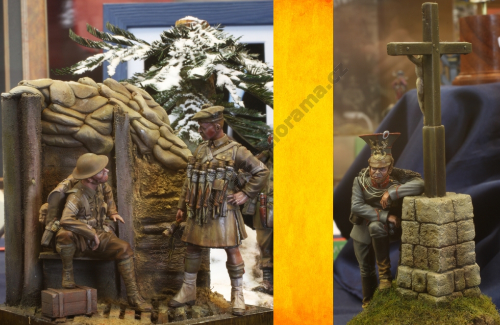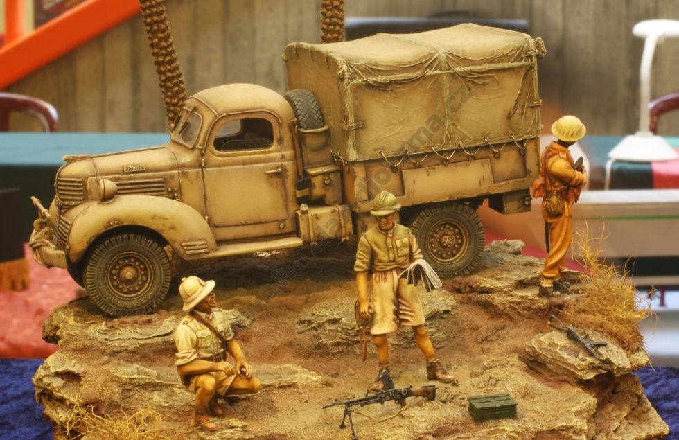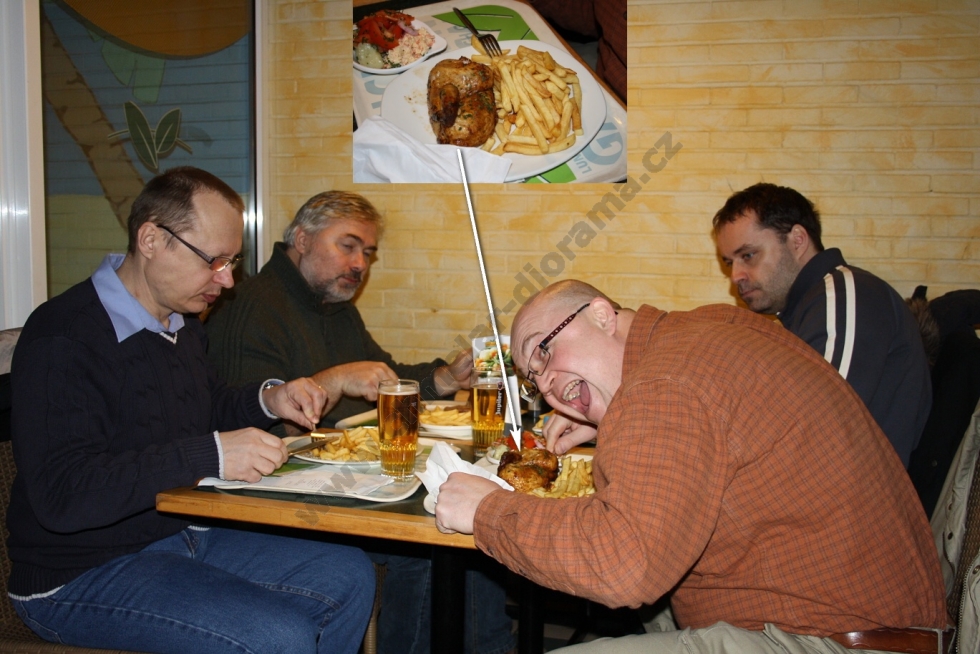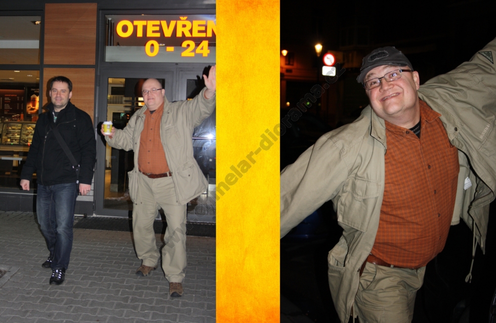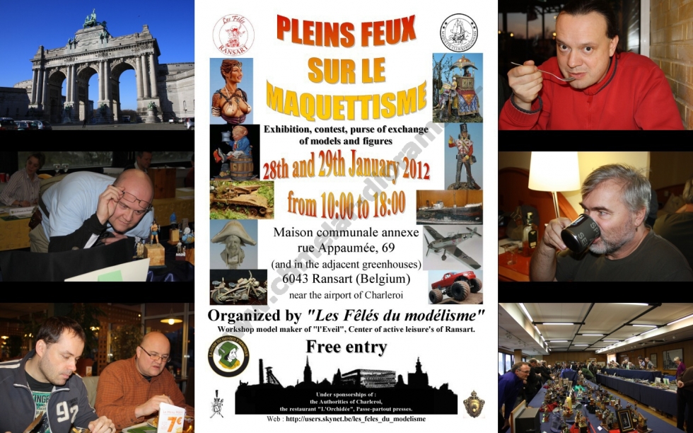 Lednový večer 26.1.2012. Je 20,00 hod. a nakládám v Praze Pavla Pachovského, který se dojemně loučí s manželkou a vyrážíme pro Slávu Vaňouse, abychom zkompletovali posádku našeho vozidla. Sláva představuje svou zásobu jídla a pití na cestu a já vím, že strádat rozhodně nebude. K mým modelům přikládá dvě letadla a vyrážíme směr Rozvadov. Zde nás ve 23,00 hod. již očekává veselá posádka druhého vozidla ve složení Michal Křepelka, Milan Dufek a Tomáš Říha. Dáváme si kávu, něco k snědku a vyrážíme. Kam že to vlastně jedeme ? No, jasně ! Směr Belgie a soutěž Pleins feux sur le maquettisme 2012. Co také dělat v lednu že ? Přeci nepůjdeme lyžovat ! Ale dost legrace již vjíždíme do Německa. Michal nasadil stejně jako v loňském roce pekelné tempo a cesta tedy ubíhá. Sláva nás baví historkami z chovu koček a za chvíli je již před námi Franfurkt nad Mohanem. Cestou jsem se vystřídal se Slávou v řízení a dále pokračujeme na Aachen. Nad ránem přebírá volant Pavel Pachovský a dojíždíme do probouzejícího se Bruselu. Následuje káva a výborný jablkový koláč v naší oblíbené kavárně, kde nás majitel pozval dále ještě hodinu před otevírací dobou. U nás asi nevídaná věc. No, nic. Vyrážíme stejně jako v loňském roce k sošce čůrající chlapečka ( Manneken Pis ), který letos získal stylový obleček. Údajně je to k výročí nějakého svátku. Chceme pořídit společnou fotografii a přemýšlíme, kdo nás vyfotí. Michalův hlučný hlas je nám nyní ku prospěchu. Na předměstí Bruselu jej zaslechl Čech žijící v Belgii a pořizuje společnou fotografii. Nejen, že nás slyšel přes půl města, ale ještě nás pozval do přilehlé prodejny pralinek, kde je zaměstnán a pozval nás na zajímavý výklad o jejich výrobě. Také poskytl slevy na vybrané sladkosti, takže setkání bylo nakonec výhodné pro obě strany. Pokračujeme do obchodu s uměleckými potřebami a přesto, že jsem zde byl v loňském roce, opět jsem v úžasu. Peněženky dostaly řádně zabrat, ale odcházíme spokojeni. Přesouváme se do vojenského muzea v Bruselu, ale zde byla patrně největší slabina zájezdu. Se Slávou vcházíme do muzea v 11,50 hod., prohlížíme expozici z Napoleonských válek a již ve 12,00 hod. nám pracovník muzea oznamuje, že je mezi 12,00 – 13,00 hod. přestávka. Hodinu nechceme čekat a tak se přesunujeme do hotelu s odhodláním, že příští rok se do muzea vrátíme a podrobně jej projdeme. Škoda… Nic se nedá dělat, přichází hodinový klid na lůžku v hotelu a již se připravujeme na cestu směr výstaviště. Michal s Pavlem připravují svůj prodejní stůl a dostává se nám vřelého přijetí. Všude kolem finišují přípravy na zítřejší zahájení a já se opět kochám krásou rostlin ve skleníku. Odjíždíme na večeři a po jejím skončení se věnujeme na hotelu ochutnávce místních piv. Musím říci, že nejsou špatná a po jejich konzumaci někteří jedinci dokonce hravě řeší některé globální celosvětové problémy. Tím jsem definitivně nabyl dojmu, že v Belgii pivo neředí. Ráno se již vydáváme na vlastní soutěž. Jelikož spím na pokoji s Pavlem je vyloučeno, že bych zaspal. Jsme zde tedy s dostatečným předstihem a v klidu parkujeme. Registrace je také vcelku rychlá a vyhnuli jsme se frontě. Modely na stolech jsou opět na vysoké úrovni a to zejména v oblasti figurek. Přes den jsem fotil a také se zastavil u některých modelářů, kteří zde v hojném množství malovali figurky, či patinovali techniku. Tato škola vydá za deset knih. I z tohoto důvodu hodnotím tuto soutěž velmi vysoko. Následující den probíhá od 15,00 hod. vyhlášení speciálních cen a od 16,30 hod. vyhlášení jednotlivých kategorií. V 18,00 hod. odjíždíme a opouštíme RANSART. Cesta probíhá v klidu, zastavujeme ještě v Německu na jídlo a poté pokračujeme dále. Domů přijíždím ve 4,00 hod. v pondělí. Sice unavený, ale bohatší o další zkušenosti a zážitky. Sem se budu rád vracet. Takže zase za rok ?